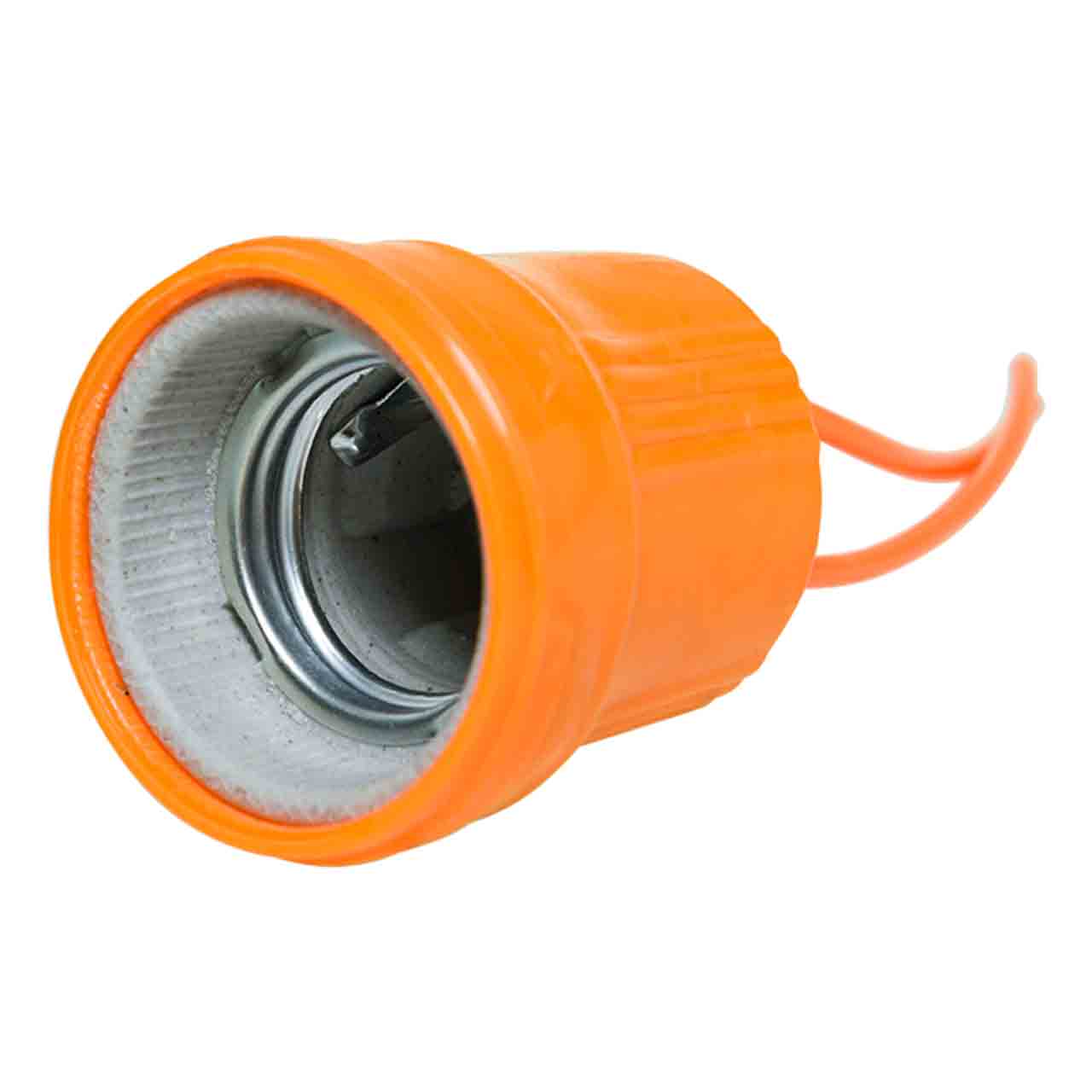 Патрон подвесной 702 с проводами обрезиненный предназначен для присоединения электрических ламп с цоколем Е27 к электрической сети. Используется в светильниках и переносках. Электрический патрон и провода имеют стильную оранжевую обрезиненную оплетку.