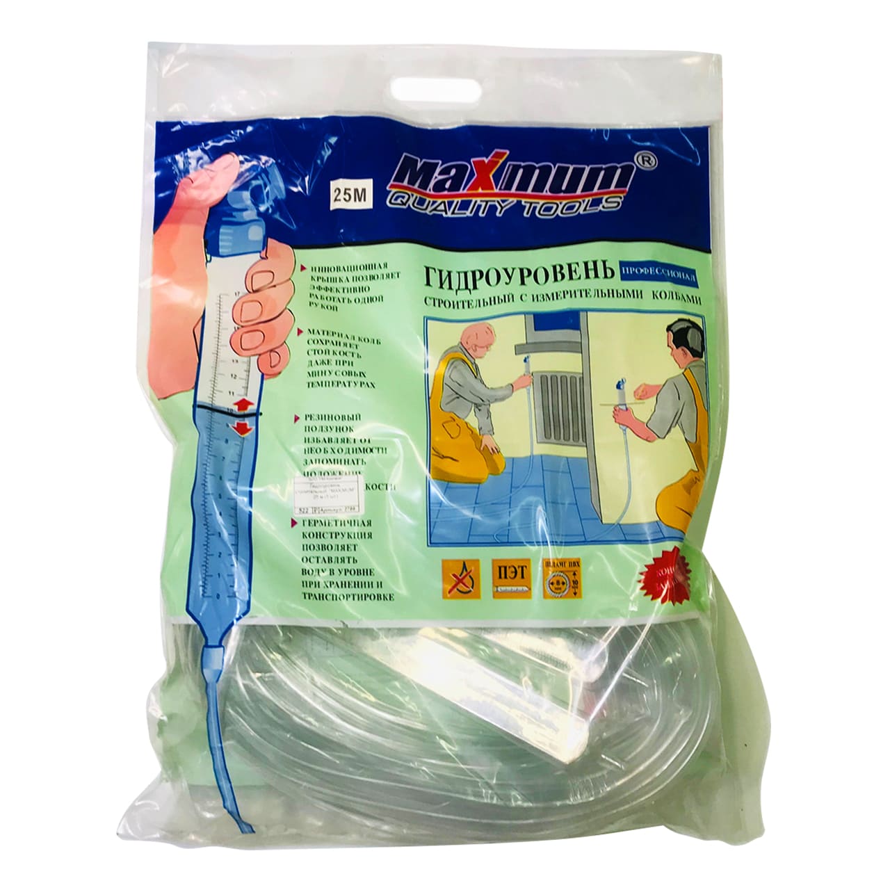 Водяной уровень 25 метров от «Maximum» создан для профессионального применения. Это удобное приспособление для укладки плитки и заливки пола в строительстве.