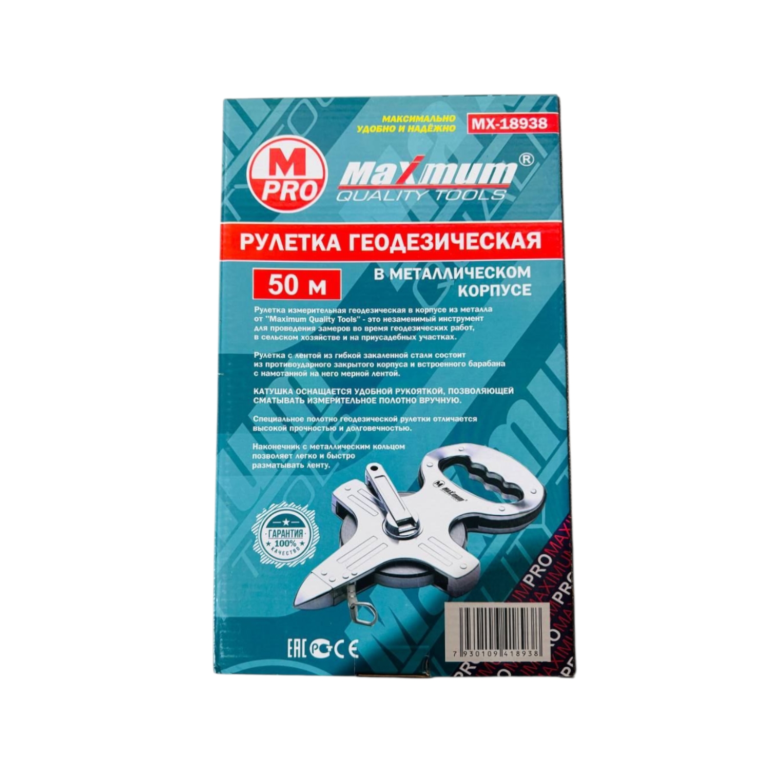 Профессиональная геодезическая рулетка «Maximum» MX 18938 с длиной ленты 50 метров создана для выполнения ответственных измерительных работ в полевых условиях. Это надежный инструмент для геодезистов, строителей и монтажников, которым требуются точные линейные измерения на больших дистанциях.