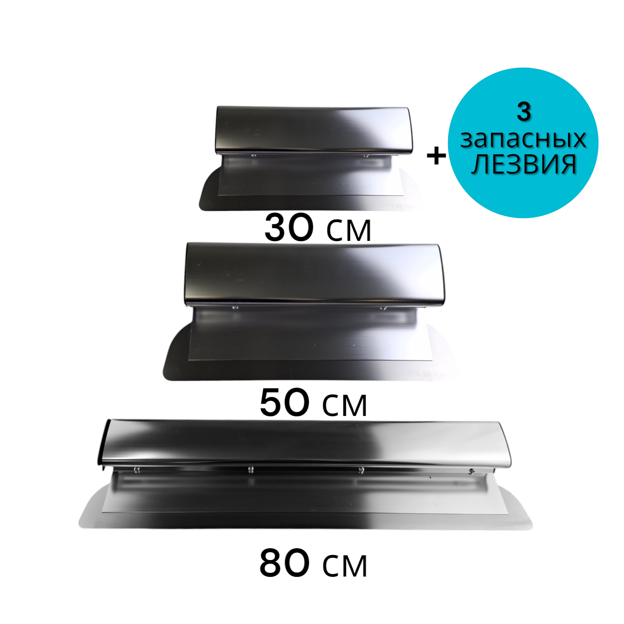 Набор металлических шпателей-правило со сменными лезвиями 0,5 мм оснащены эргономичными ручками из алюминия, что значительно увеличивает ресурс инструмента и делает его более удобным в использовании.
