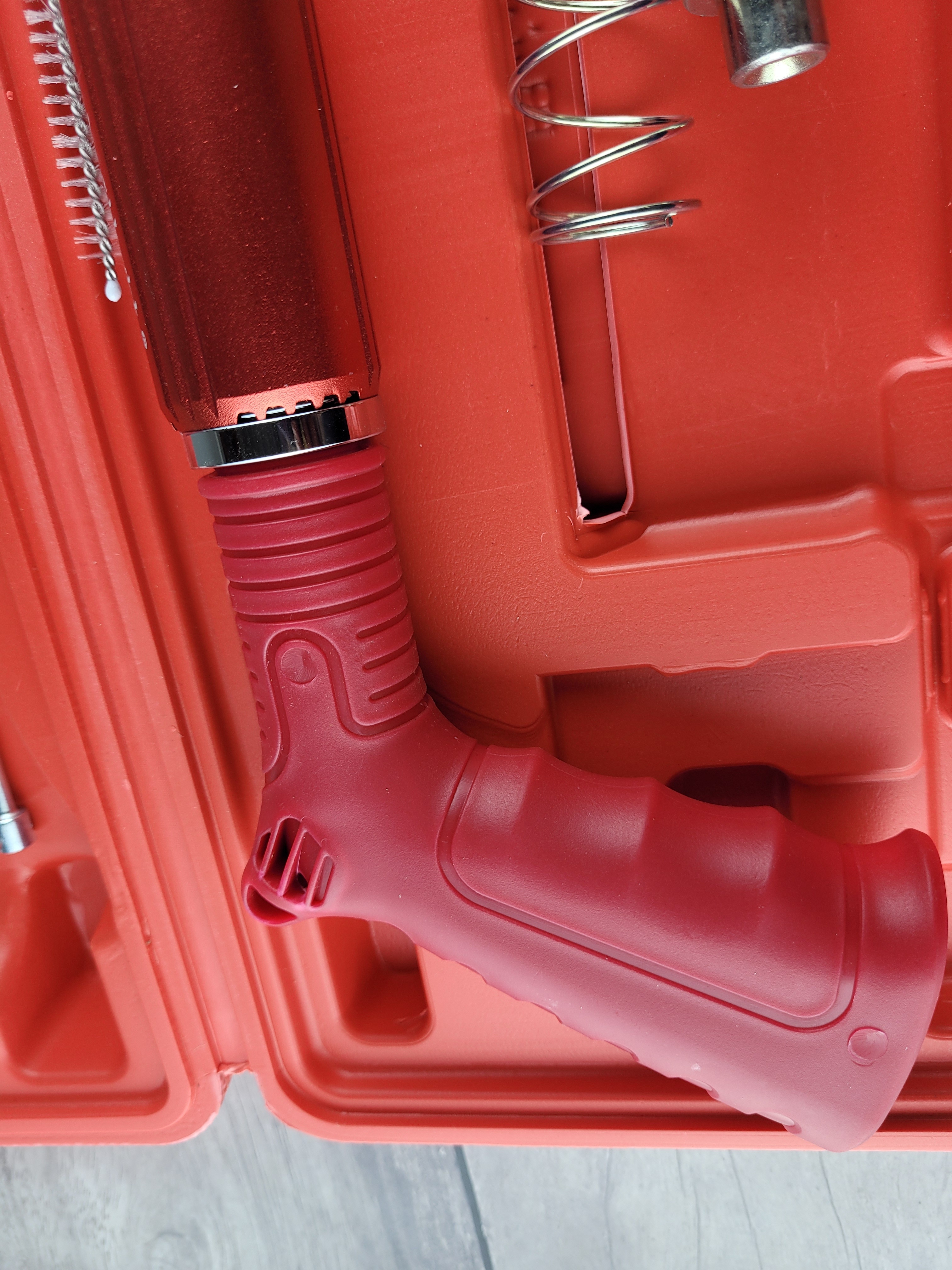 Встроеный глушитель делает работу комфортное. Прорезиненные вставки на рукояти обеспечивают надежное удержание инструмента и снижают отдачу от выстрела.