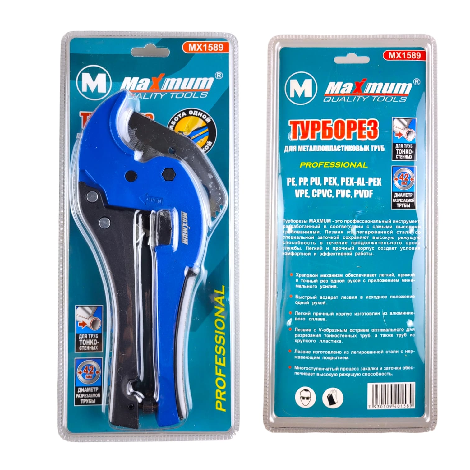 Ножницы для полипропиленовых труб 42 мм от бренда "MAXIMUM" работают с различными материалами PEX, PP, PEX.