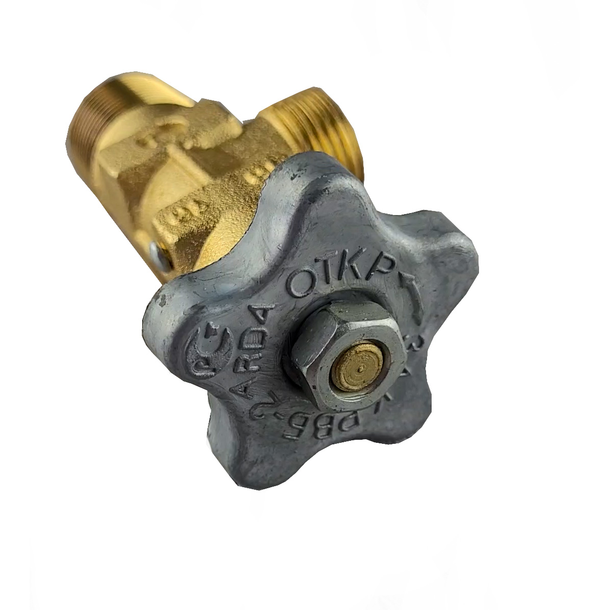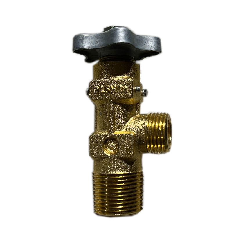 Вентиль баллонный пропановый ВБ-2 предназначен для установки на баллоны объемом до 50 л для сжиженных углеводородных газов на давление до 1,6 МПа, и является их запорным устройством при наполнении, хранении и расходовании газа. Резьба входного штуцера W27,8, Резьба расходного штуцера левая Сп. G21,8-LH. Размеры: 102х58хØ50мм.Вентиль для пропанового бытового газового баллона выполнен из латуни.