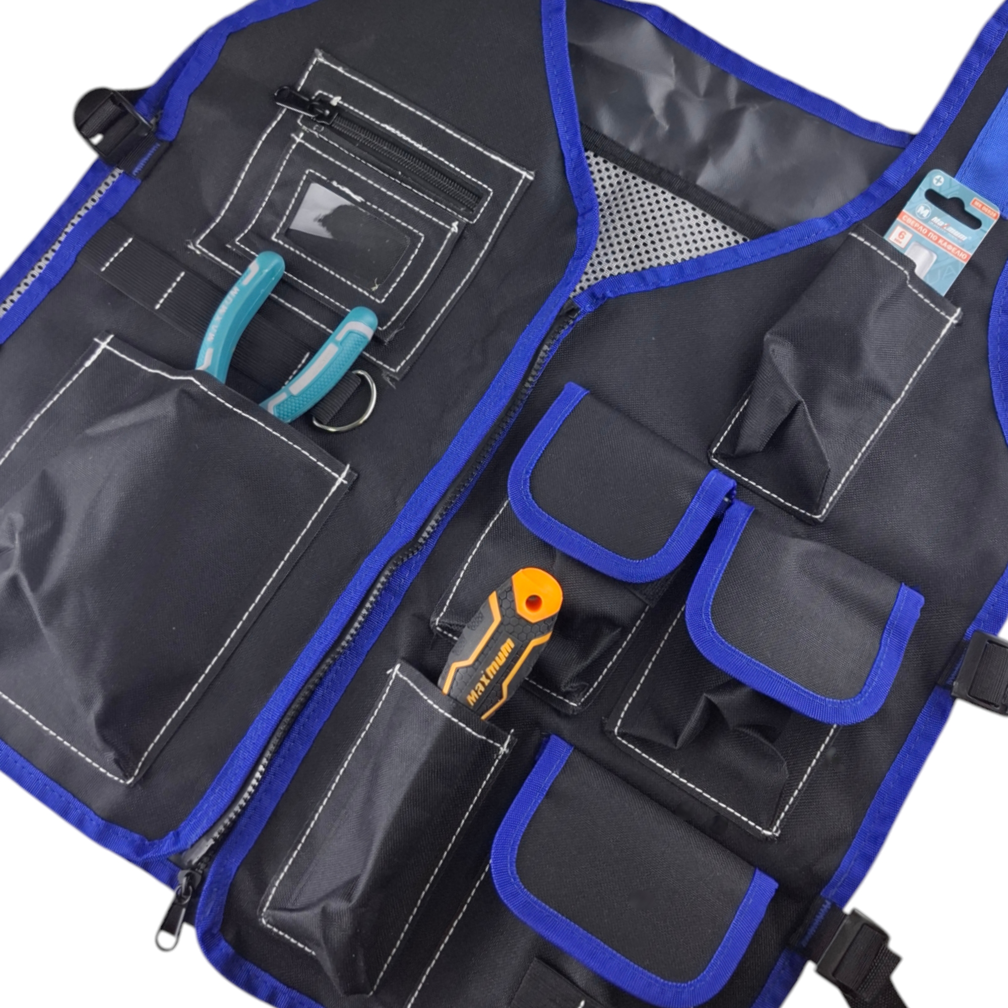 Строительный жилет для инструментов создан для тех, кто ценит порядок и эффективность. Удобный универсальный по размеру жилет на молнии и с карманами незаменимый спутник на стройплощадке, при ремонте дома, в гараже или во время активного отдыха. Больше не нужно тратить время на поиски отвертки или молотка — все инструменты находятся в прямом доступе.
